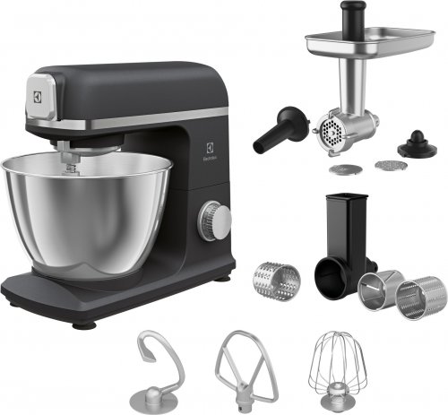 W zestawie z robotem Electrolux E5KM1-6GBP znajduje się maszynka do mielenia mięsa z trzema sitkami o różnej grubości oraz lejek do nadziewania kiełbasy. Dodatkowo, wielofunkcyjna szatkownica ułatwia krojenie warzyw, owoców, sera i orzechów, co czyni to urządzenie jeszcze bardziej wszechstronnym.
