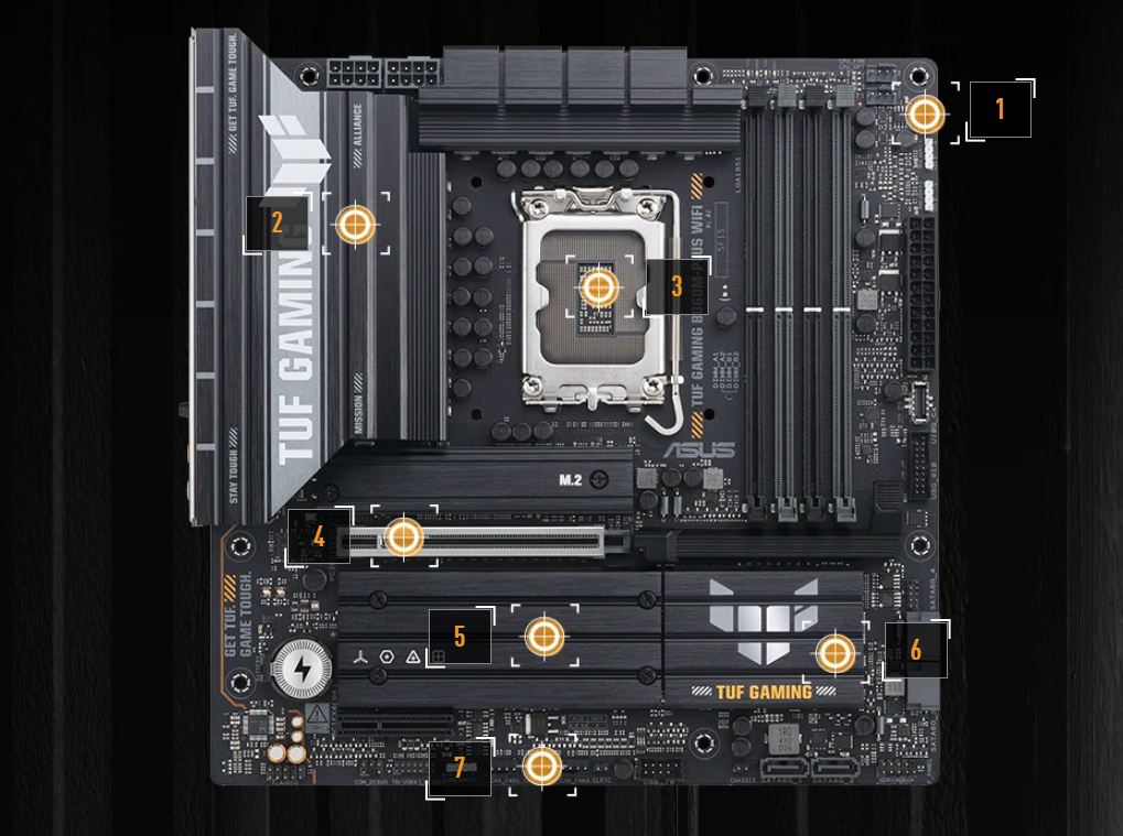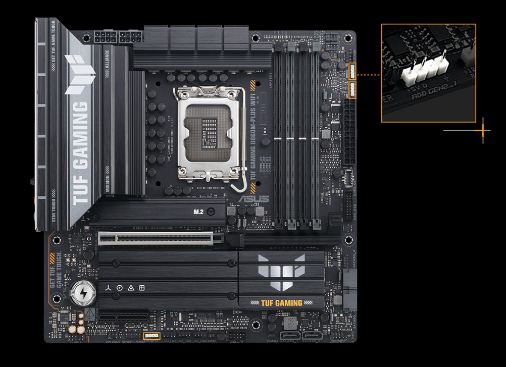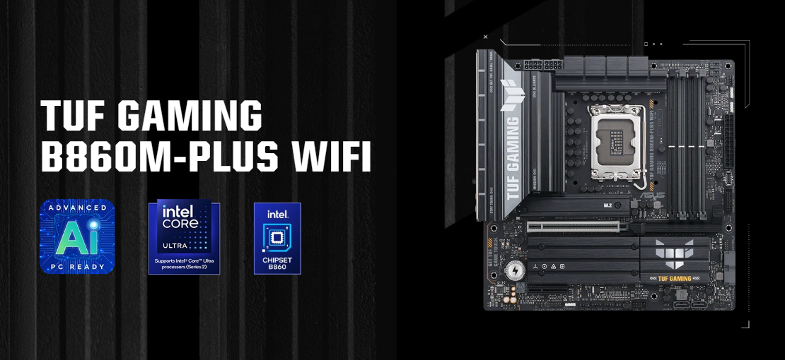 ASUS TUF GAMING B860M-PLUS WIFI wykorzystuje wszystkie niezbędne elementy najnowszych procesorów Intel® Core™ Ultra (seria 2) i łączy je z funkcjami gotowymi do gry i sprawdzoną wytrzymałością. Zaprojektowana z komponentów klasy wojskowej, ulepszonym rozwiązaniem zasilania i kompleksowym systemem chłodzenia, ta płyta główna przekracza oczekiwania dzięki solidnej i stabilnej wydajności podczas maratonów grania. Płyty główne TUF GAMING przechodzą również rygorystyczne testy wytrzymałościowe, aby upewnić się, że poradzą sobie w warunkach, w których inne mogą zawieść. Ta platforma zapewnia moc i łączność, których wymagają zaawansowane aplikacje AI PC.