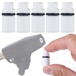 Porcelanowy materiał ceramiczny HQ, z którego wykonane są dysze, zapewnia ich odporność na ścieranie oraz długotrwałe użytkowanie. Dysze te oferują precyzyjny i skoncentrowany strumień, co przekłada się na ich dłuższą żywotność w porównaniu do dysz plastikowych czy metalowych. Inwestując w ten zestaw, zyskujesz niezawodny element do swojej piaskarki.