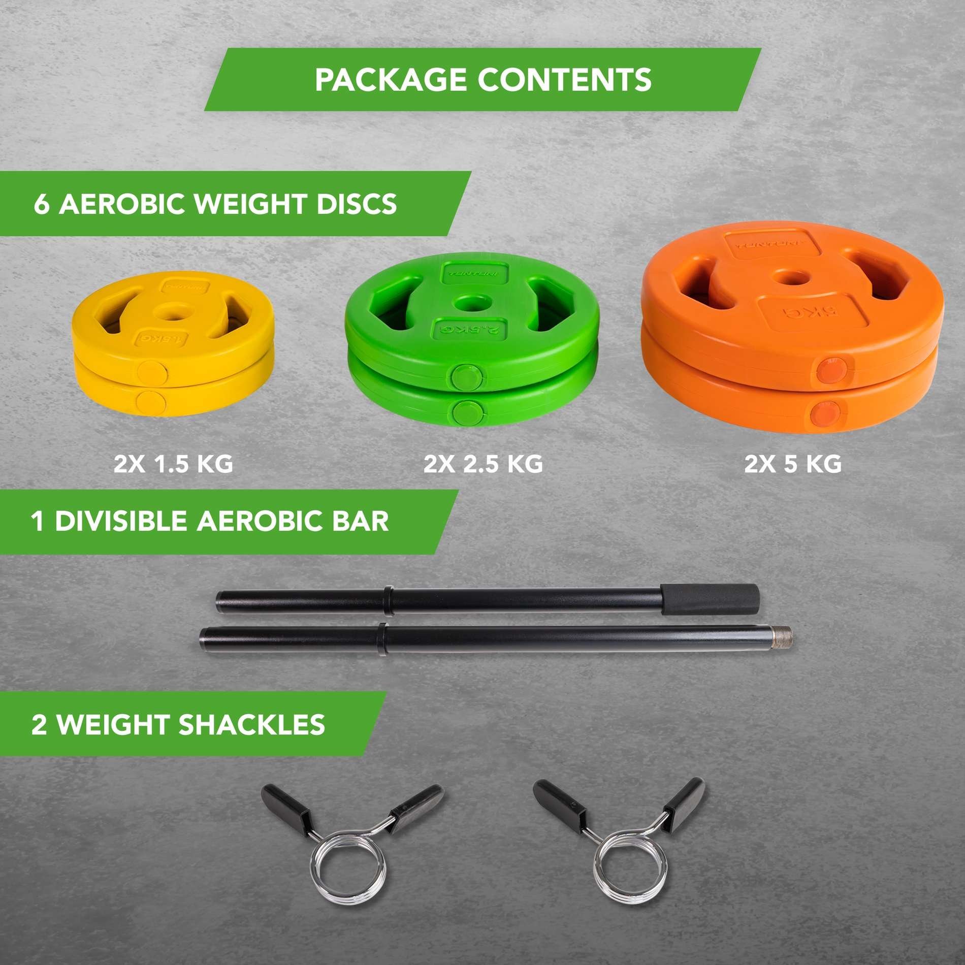 Chciałbyś wzmocnić mięśnie, ale nie masz ochoty codziennie chodzić na siłownię? Bez problemu. Dzięki temu zestawowi ciężarków Tunturi z pompką do aerobiku możesz z łatwością wykonywać trening w domu. Zestaw składa się z metalowego drążka z różnymi kolorowymi płytkami. Każdy kolor reprezentuje inną wagę, a maksymalna waga zestawu to 20 kg. Idealny zestaw do ćwiczeń na pompie i wielu innych ćwiczeń!