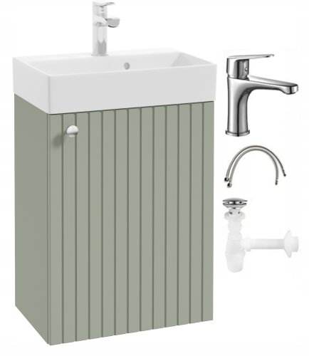 Przedstawiamy nowoczesną szafkę łazienkową z umywalką oraz chromowaną baterią w kolorze eukaliptusowym. Zestaw Kiara to idealne rozwiązanie do każdej łazienki, łączące elegancję z funkcjonalnością. Dzięki ryflowanemu frontowi oraz świeżemu odcieniowi eukaliptusa, szafka wprowadza do wnętrza styl i lekkość, doskonale wpisując się w nowoczesne, skandynawskie lub loftowe aranżacje.