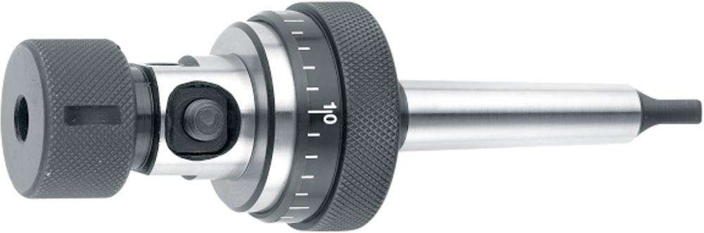 Uchwyt wyposażony jest w konus Morse'a DIN 228-B, co zapewnia stabilne mocowanie narzędzi. Dodatkowo, możliwość bezstopniowego ustawienia sprzęgła bezpieczeństwa poprzez obrót nakrętki pozwala na dostosowanie do różnych warunków pracy. Użytkownicy mogą łatwo przełączać się między sprzęgłem kłowym a tarczowym, co jest szczególnie przydatne przy obróbce małych gwintów, zapewniając wygodę i efektywność pracy.