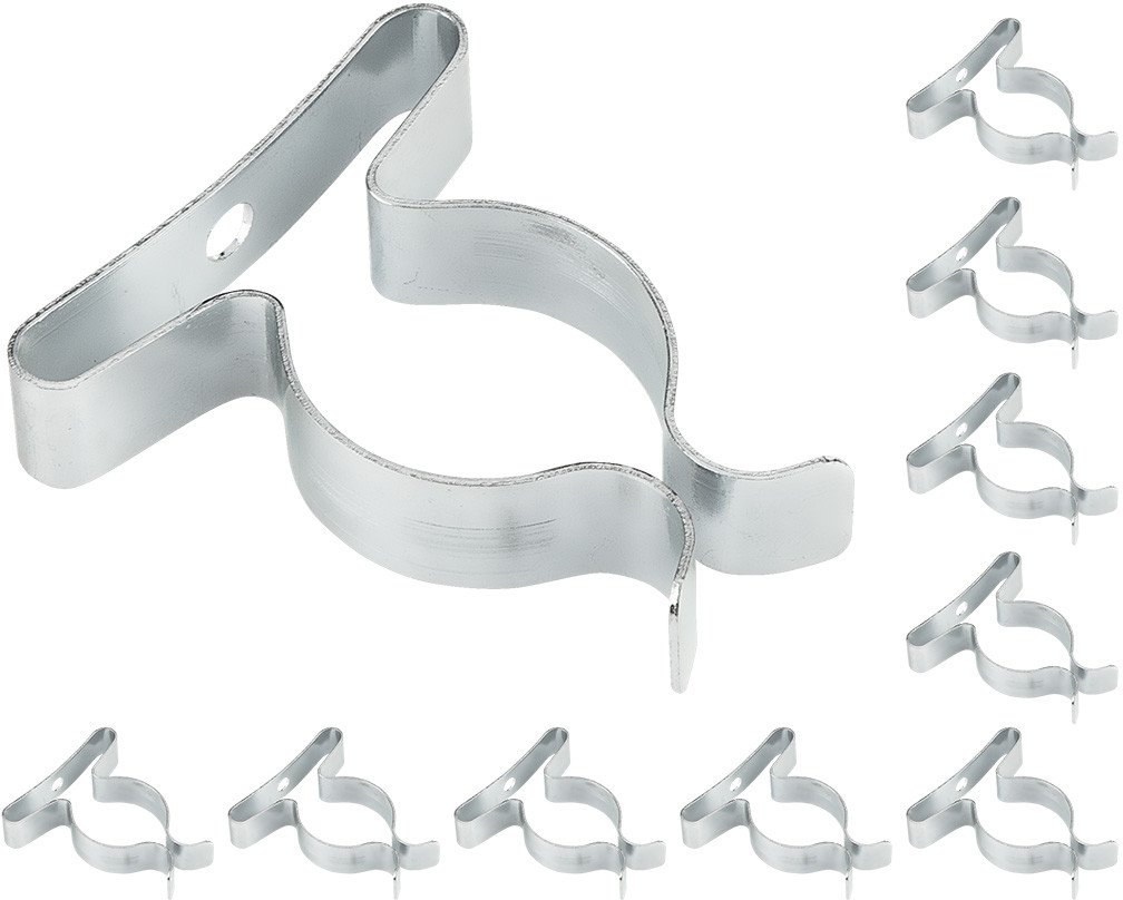 Uchwyt na narzędzia, przeznaczony do mocowania narzędzi takich jak np. miotły, grabie, motyki, widły, łopaty itp. Przystosowany do narzędzi posiadających trzonek o średnicy 19 mm. Wykonany ze sprężystej stali węglowej