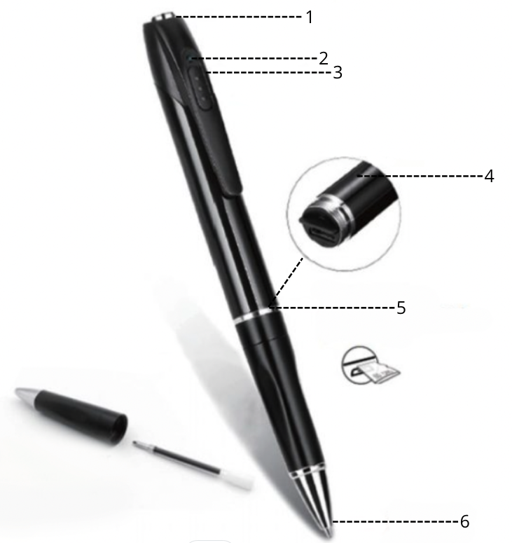 UKRYTA MINI KAMERA SZPIEGOWSKA DŁUGOPIS PODSŁUCH ZAPIS NA KARTĘ MICROSD