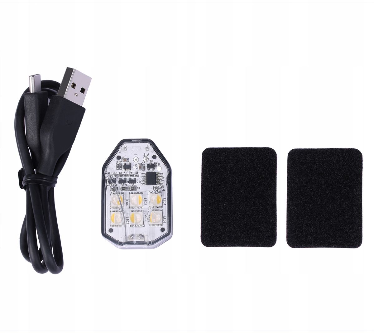 Lampę LED instaluje się przy pomocy przylepców 3M. Przylepiec z rzepem mocuje się na korpusu drona, a następnie lampę która ma już wbudowany rzep mocuje się na przylepcu. Dzięki temu możemy szybko zamocować i zdjąć lampę z drona, a silny rzep gwarantuje pewne mocowanie nawet w trudnych warunkach.
