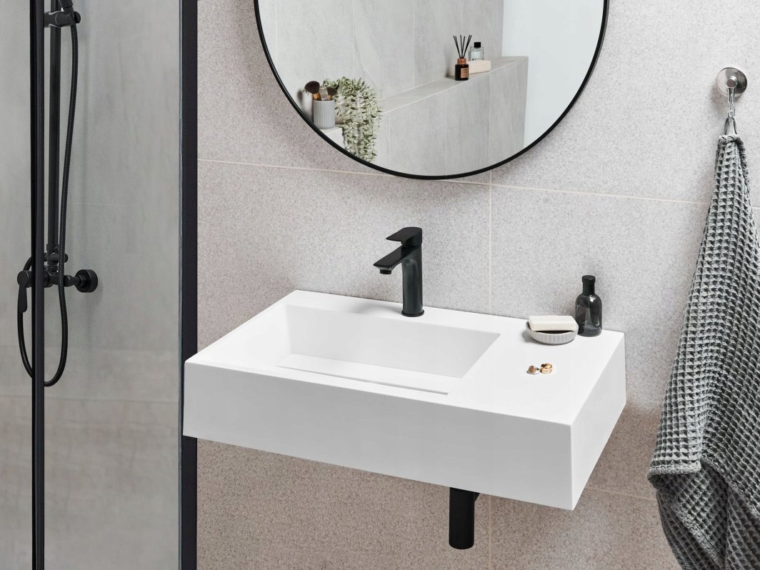• Cechy: Trwała i odporna na wstrząsy, łatwa w pielęgnacji, minimalistyczny design, możliwość montażu na ścianie lub jako umywalka nablatowa.