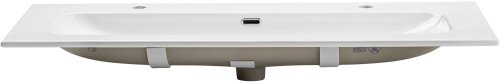 Umywalka ma długość 121 cm, szerokość 101 cm oraz wysokość 15.5 cm, co sprawia, że jest odpowiednia do różnych rozmiarów łazienek. Głębokość misy wynosi 46 cm, co zapewnia komfort użytkowania. Umywalka jest przeznaczona do montażu wpuszczanego w szafkę, co pozwala na oszczędność miejsca oraz estetyczne wykończenie.