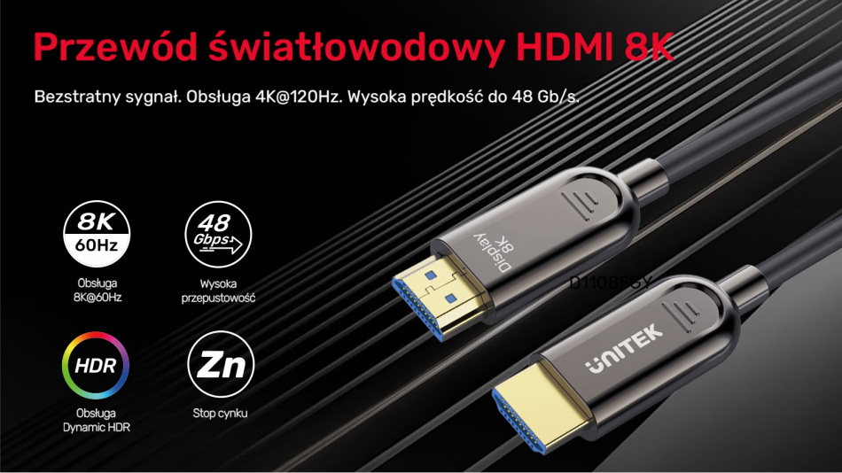 Kabel światłowodowy HDMI umożliwia przesyłanie obrazu w rozdzielczości 7680x4320 UHD 8K i przy odświeżaniu na poziomie 60Hz lub w rozdzielczości 4K i z superszybkim odświeżaniem 120 Hz/144 Hz. Za głębię i intensywność kolorów odpowiada obsługa dynamicznego HDR z 12-bitową technologią przetwarzania kolorów. Nie umknie Ci już żadna dynamiczna scena ani najdrobniejszy szczegół obrazu - teraz granie w gry komputerowe czy oglądanie zawodów sportowych możesz wynieść na jeszcze wyższy poziom!