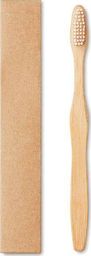 Bambusowa szczoteczka do zębów, włosie z nylonu. Zapakowana w pudełko z papieru kraft.