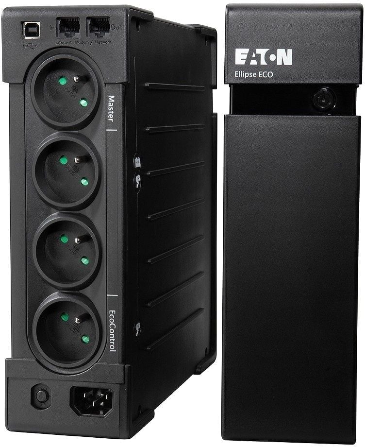 UPS Eaton Ellipse ECO* to zabezpieczenie przed problemami z zasilaniem oraz zaawansowany ogranicznik przepięć (zgodny z normą IEC 61643-1) zamknięte w smukłej obudowie. Dzięki wydajnej konstrukcji elektrycznej i funkcji EcoControl*, UPS Eaton Ellipse ECO* pomaga zaoszczędzić nawet o 25% więcej energii w porównaniu z zasilaczami UPS poprzedniej generacji.