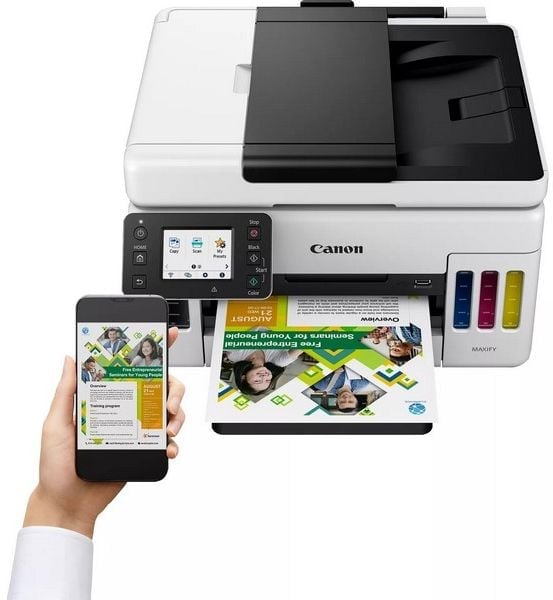 Aplikacja Canon PRINT umożliwia drukowanie, skanowanie i kopiowanie oraz łączenie się z chmurą. Zgodność z Apple AirPrint (iOS) i Mopria (Android) oraz obsługa łączności Ethernet i dwuzakresowej sieci Wi-Fi.