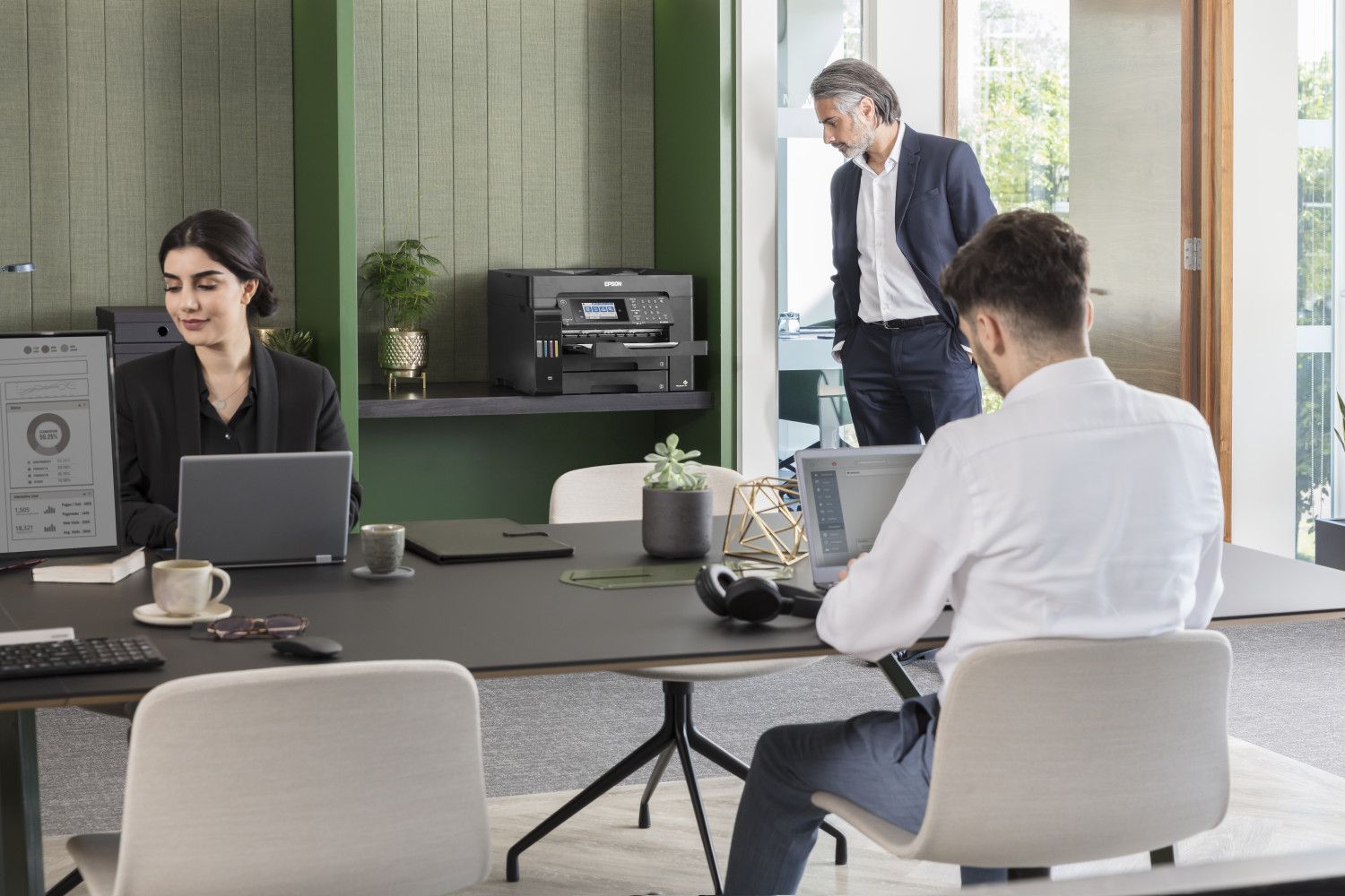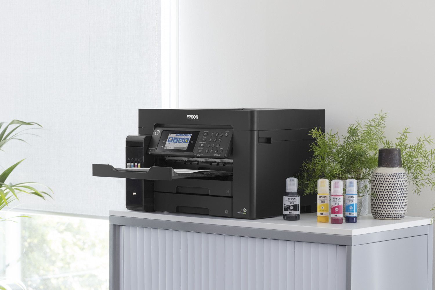 EcoTank* umożliwia proste drukowanie z telefonów, tabletów i laptopów. Dzięki obsłudze Wi-Fi i Wi-Fi Direct możesz przesyłać dokumenty do wydrukowania z urządzeń inteligentnych, używając aplikacji Epson iPrint2.