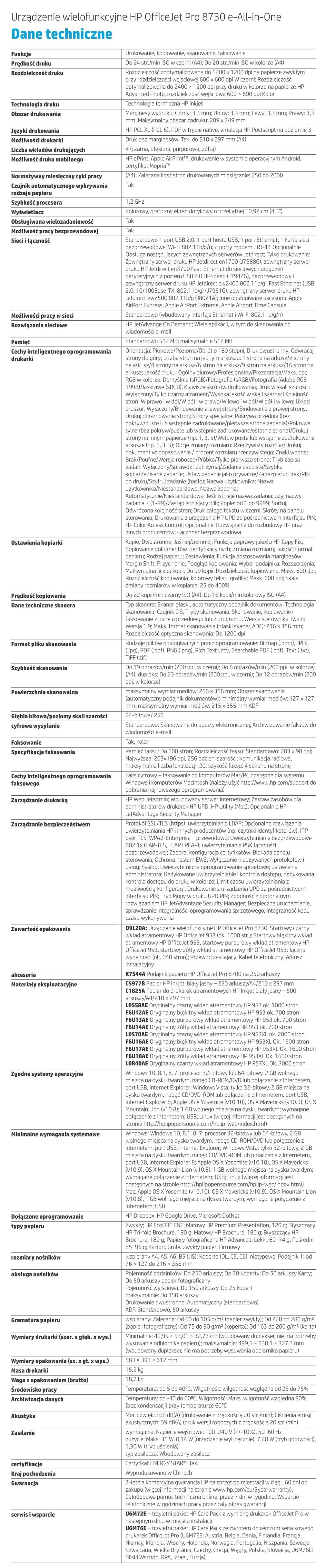 Urządzenie wielofunkcyjne HP OfficeJet Pro 8730 (D9L20A)