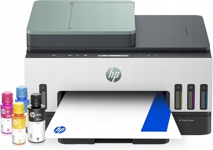 Drukarka jest kompatybilna z butelkami tuszu HP 32XL czarna (135 ml, ~6000 stron), HP 31 cyjan (70 ml, ~8000 stron), HP 31 magenta (70 ml, ~8000 stron) oraz HP 31 żółta (70 ml, ~8000 stron). Dzięki temu użytkownicy mogą cieszyć się długotrwałym użytkowaniem bez obaw o częste zakupy tuszu.