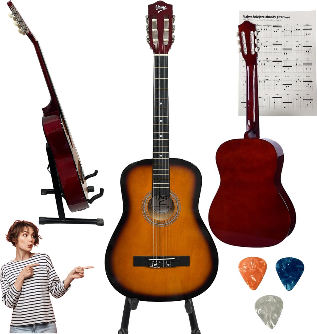 Miękkie nylonowe struny sprawiają, że gra na tej gitarze jest przyjemnością, co czyni ją idealnym wyborem dla osób, które dopiero zaczynają swoją muzyczną przygodę. Wygodna menzura o długości 630 mm oraz 18 progów zapewniają komfort użytkowania, zarówno dla dzieci, młodzieży, jak i dorosłych.