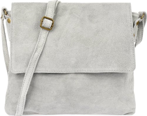 Vera Pelle Włoska Torebka damska zamszowa listonoszka z klapą jasna szara B67