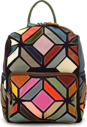 Wykonany z najwyższej jakości skóry, ten plecak łączy w sobie elegancję i trwałość. Wyróżniający się wzór mozaiki, składa się z kolorowych kawałków skóry, precyzyjnie zszytych razem, aby stworzyć intrygującą i atrakcyjną estetykę. Ten plecak na pewno przyciągnie spojrzenia, gdziekolwiek się z nim znajdziesz.