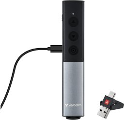 Prezentator Verbatim oferuje łatwe w obsłudze przyciski do nawigacji slajdów oraz przełączania ekranów, co znacząco upraszcza prowadzenie prezentacji. Niezależnie od tego, czy jesteś w sali konferencyjnej, klasie, czy podczas spotkania online, możesz skupić się na przekazywaniu treści, a nie na technicznych detalach.