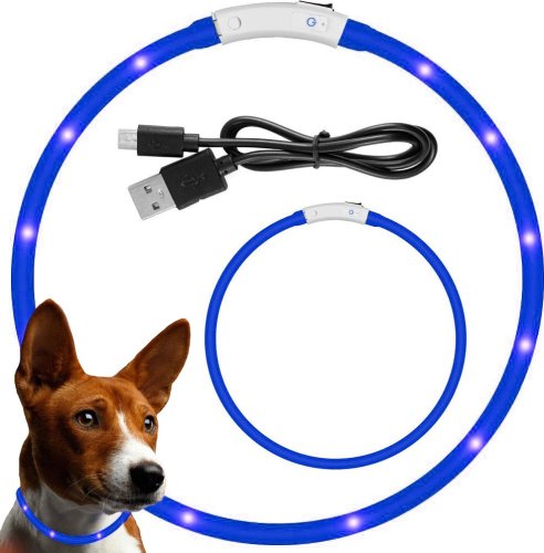 OBROŻA ŚWIECĄCA LED DLA PSA I KOTA WODOODPRNA REGULOWANA REGULACJA 47cm USB Świecąca obroża to idealne rozwiązanie dla naszych pupili. Doskonale sprawdzi się podczas spacerów z psem lub kotem po zmroku.Oświetlenie pozwoli ci nie tylko ustrzec swojego zwierzaka przed niespodziewanym wypadkiem, ale również ciebie. Obroża posiada 3 tryby świecenia: szybkie miganie, wolne miganie, ciągłe. Obroża posiada możliwość dopasowania długości do szyi zwierzaka wystarczy przyciąć odpowiedni kawałek.Uwaga!Ważne aby nie przeciąć obroży w miejscu gdzie znajduje się LED W obroży nie trzeba wymieniać baterii ponieważ posiada akumulator, który starcza na ok 3 godziny świecenia. Kiedy obroża rozładuje się, wystarczy podładować ją kablem USB dołączonym do zestawu. SKRACANIE OBROŻY:✅ Rozpinamy obrożę i wyjmujemy białą końcówkę✅ Mierzymy szerokość szyi psa✅ Nożyczkami skracamy obroże do odpowiedniej długości uważając aby nie przeciąć diod✅ Umieszczamy wyjącą wcześniej białą końcówkę ------SPECYFIKACJA TECHNICZNA:✅ Kod produktu: 19327_N✅ Wykonane z wysokich jakości materiałów✅ Materiał: silikon, tworzywo sztuczne✅ Regulacja (do samodzielnego przycięcia)✅ 3 tryby świecenia✅ Czas świecenia: ok 3h✅ Długość: od 41cm do 47cm✅ Zasilanie: akumulatorowe✅ Ładowanie: przez kabel USB✅ Kolor: niebieski✅ Produkt posiada certyfikat CE ZESTAW ZAWIERA:☑️ Fabrycznie nową obrożę LED☑️ Kabel USB☑️ Oryginalne opakowanie