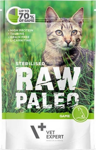 VetExpert Raw Paleo to karma zbilansowana i pełnoporcjowa, co oznacza, że dostarcza wszystkich niezbędnych składników odżywczych, kluczowych dla zdrowia kotów po sterylizacji. Dzięki starannie dobranym składnikom, karma wspiera utrzymanie prawidłowej wagi oraz kondycji Twojego pupila.