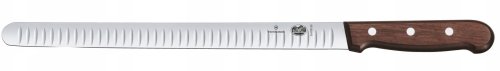 Nóż do łososia Victorinox z ostrzem o długości 30 cm to znakomite narzędzie, które sprawdzi się w każdej kuchni. Stworzony z myślą o pasjonatach ryb, ten nóż umożliwia precyzyjne porcjowanie łososia, dzięki czemu każdy kawałek jest idealnie przygotowany do podania. Jego długie, cienkie ostrze z ryflowaniem minimalizuje straty cennych kawałków ryby, co czyni go niezastąpionym pomocnikiem w kuchni.