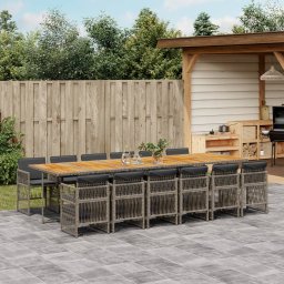 - Materiał: rattan PE, stal malowana proszkowo, lite drewno akacjowe wykończone olejem