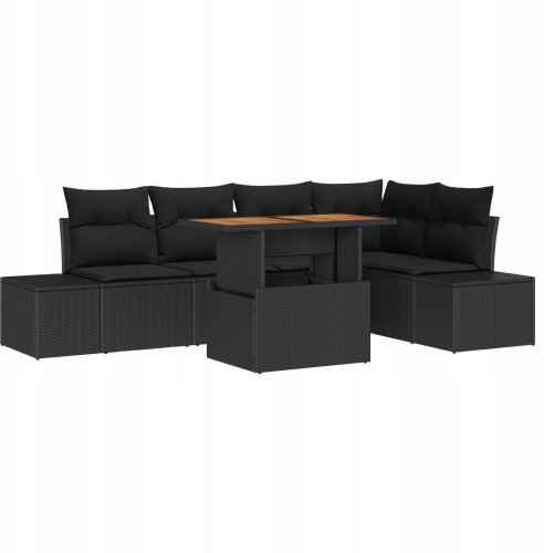 vidaXL 6-osobowy zestaw sof ogrodowych z poduszkami czarny polirattan