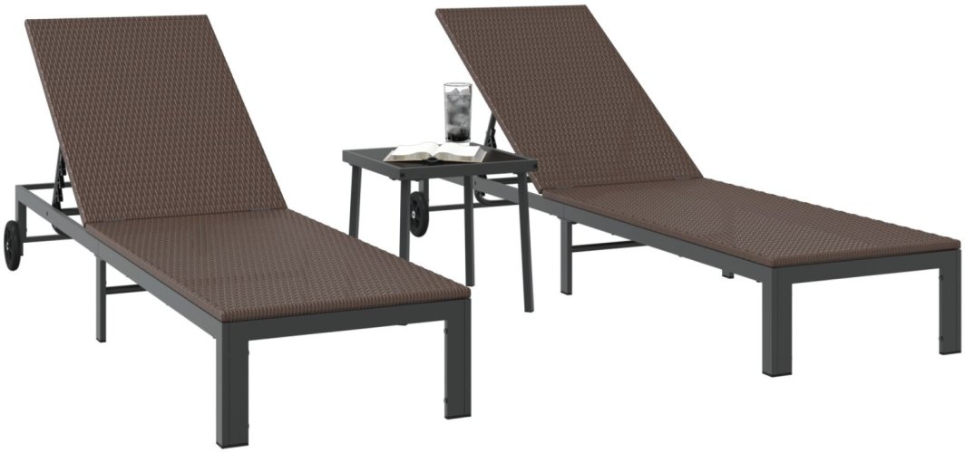 Ten zestaw leżaków z poduszkami łączy komfort ze stylem, idealny do opalania lub po prostu relaksu na balkonie, patio czy w ogrodzie. Zrobiony z mocnych materiałów syntetycznych i metalu, zniesie każdą pogodę, a jednocześnie daje przyjemne doznania podczas leżenia, gdy słońce świeci.