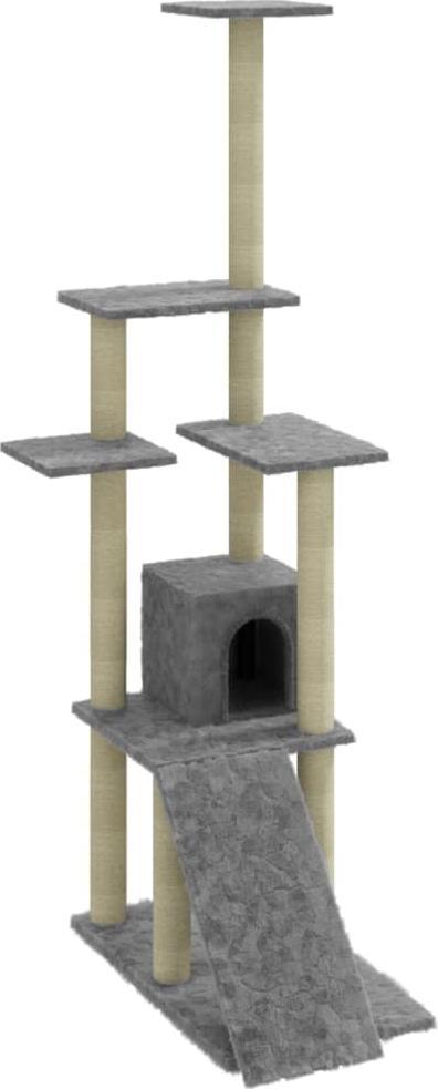 vidaXL Drapak dla kota ze słupkami sizalowymi, jasnoszary, 155 cm