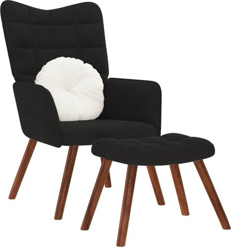 VidaXL Fotel z podnóżkiem, czarny, obity aksamitem