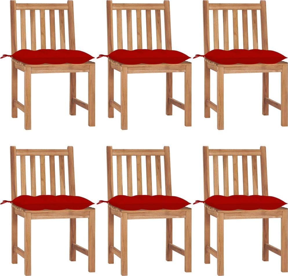 vidaXL Krzesła ogrodowe 6 szt., z poduszkami, lite drewno tekowe