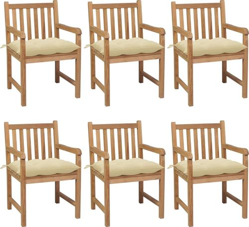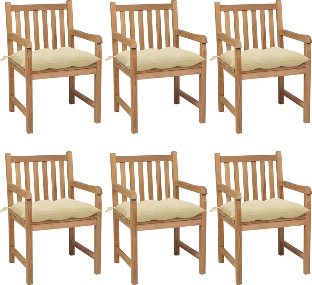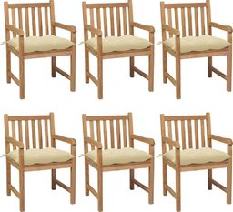 vidaXL Krzesła ogrodowe z kremowymi poduszkami, 6 szt., drewno tekowe