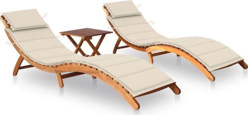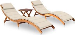 vidaXL Leżaki z poduszkami i stolikiem, 2 szt., lite drewno akacjowe
