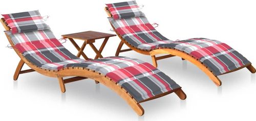 vidaXL Leżaki z poduszkami i stolikiem, 2 szt., lite drewno akacjowe