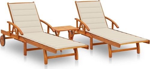vidaXL Leżaki z poduszkami i stolikiem lite drewno akacjowe 2 szt.