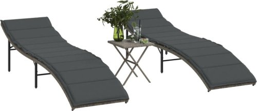 vidaXL Leżaki ze stolikiem, 2 szt., szare, polirattan