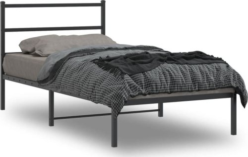 vidaXL Metalowa rama łóżka z wezgłowiem, czarna, 100x190 cm