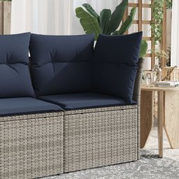 vidaXL Narożny moduł sofy z poduszkami, szary, polirattan