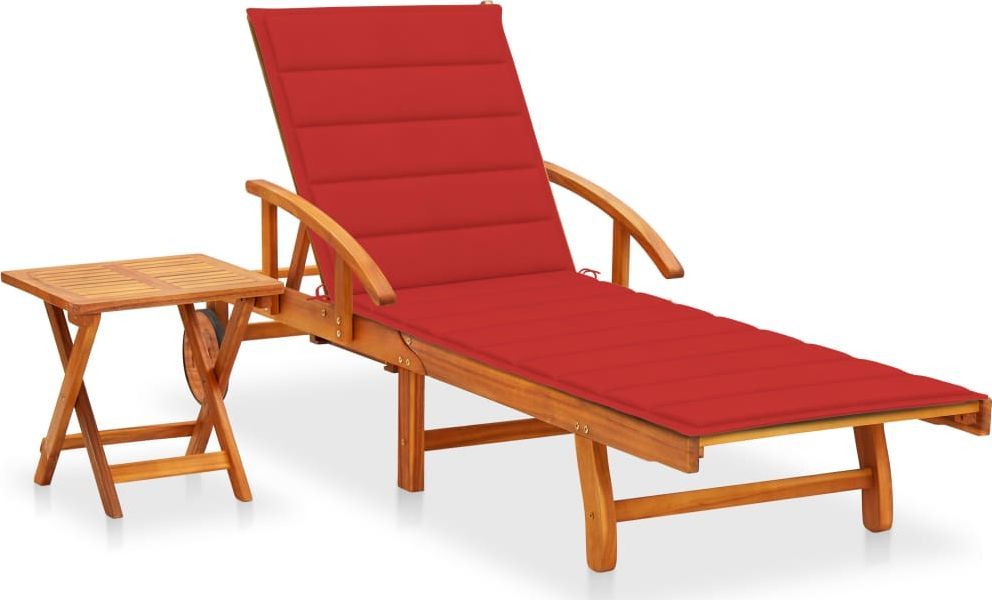 vidaXL Ogrodowy leżak ze stolikiem i poduszką, lite drewno akacjowe