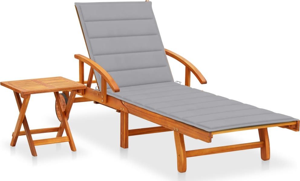 vidaXL Ogrodowy leżak ze stolikiem i poduszką, lite drewno akacjowe