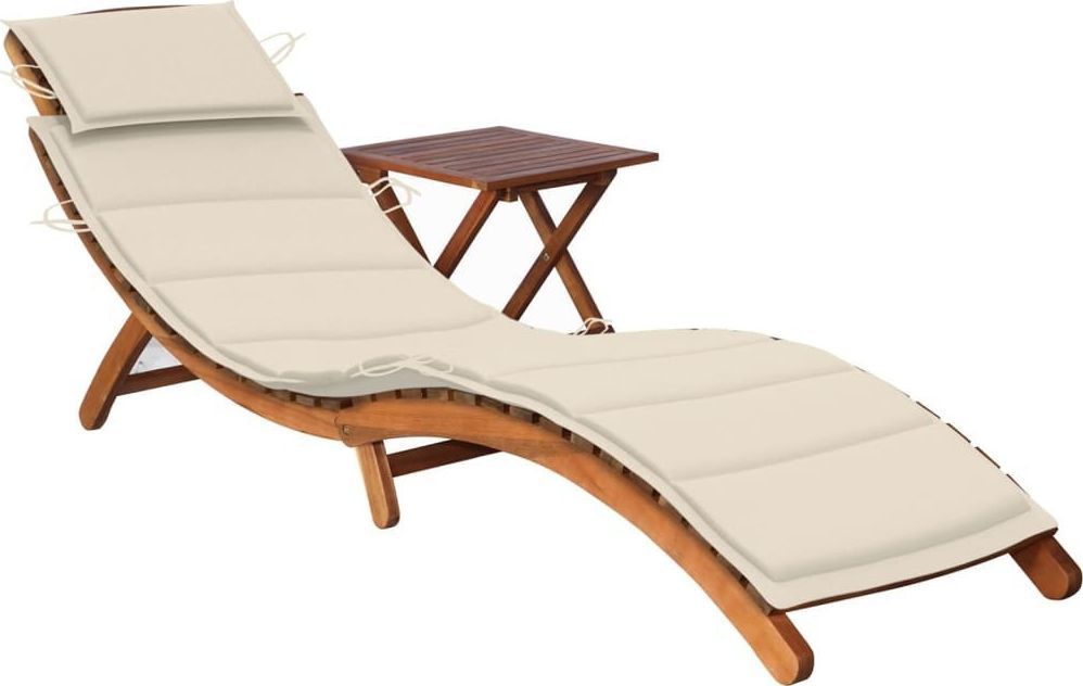 vidaXL Ogrodowy leżak ze stolikiem i poduszką, lite drewno akacjowe