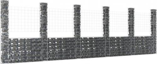 vidaXL Ogrodzenie gabionowe z 6 słupkami, żelazo, 620x20x200 cm