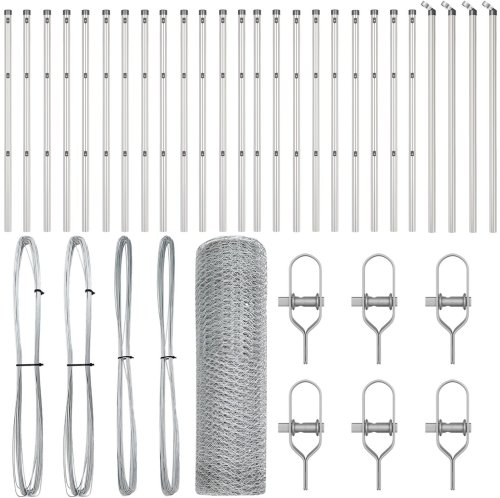 • Kompletny zestaw: To rozwiązanie ogrodzeniowe zawiera wszystko, co potrzebujesz, w tym rolkę siatki, słupy ogrodzeniowe, przewody i mocowania do łatwego montażu.