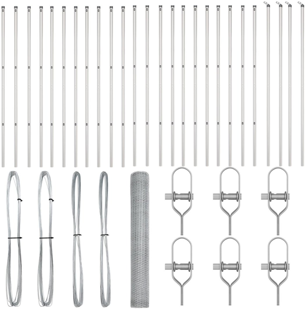 vidaXL Ogrodzenie sześciokątne 1x100 m stal ocynkowana, vidaXL Słupki ogrodzeniowe 13 szt. 32 mm 150 cm stal ocynkowana