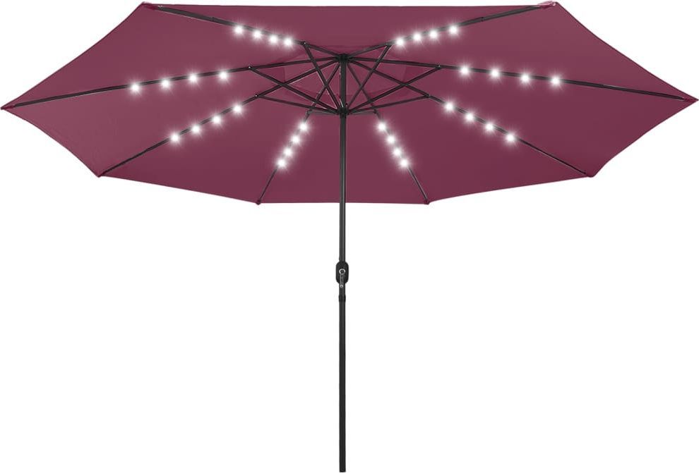 vidaXL Parasol ogrodowy z LED i stalowym słupkiem, 400 cm, bordowy