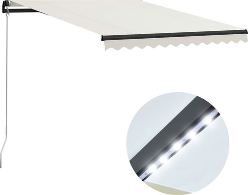 vidaXL Ręcznie zwijana markiza z LED, 300 x 250 cm, kremowa