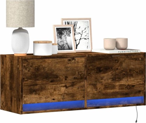 vidaXL Ścienna szafka TV z LED, przydymiony dąb, 100x31x35 cm