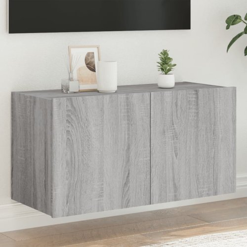 vidaXL Ścienna szafka TV z LED, szary dąb sonoma, 80x35x41 cm