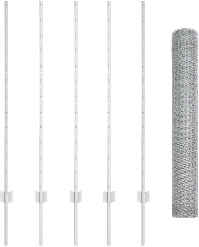 vidaXL Słupki ogrodzeniowe 11 szt. U-Channel 60 cm z ocynkowanej stali, Ogrodzenie heksagonalne 0,6x25 m z ocynkowanej stali