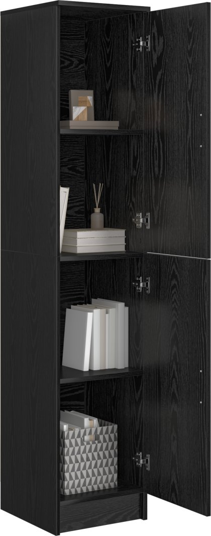 • Duża przestrzeń do przechowywania: Szafka ma cztery przestronne półki za dwoma drzwiami, oferując mnóstwo miejsca na wszystkie Twoje rzeczy, idealna do trzymania naczyń, pościeli lub prezentowania dekoracji.